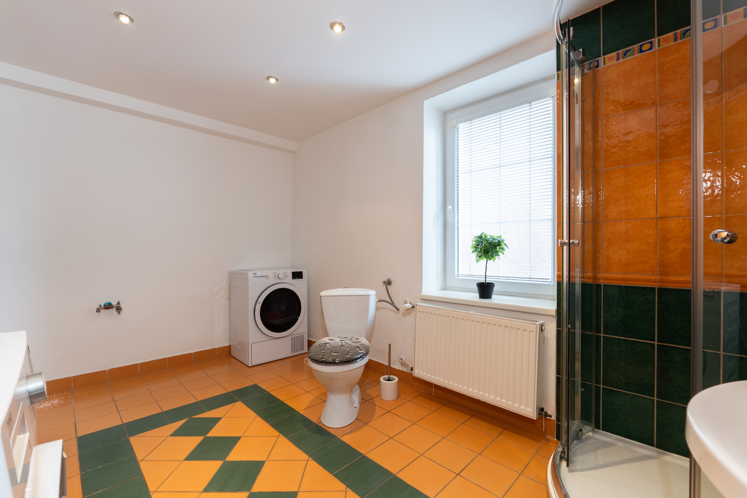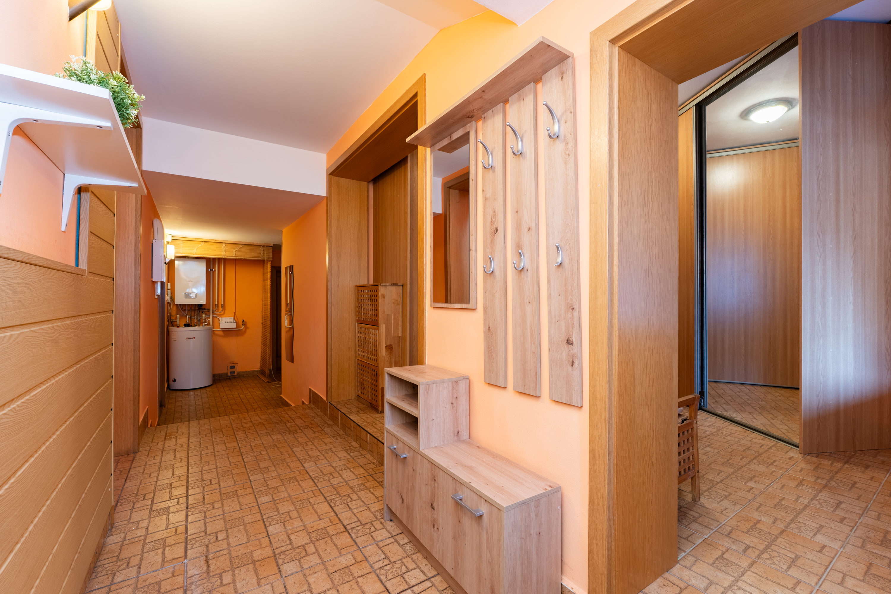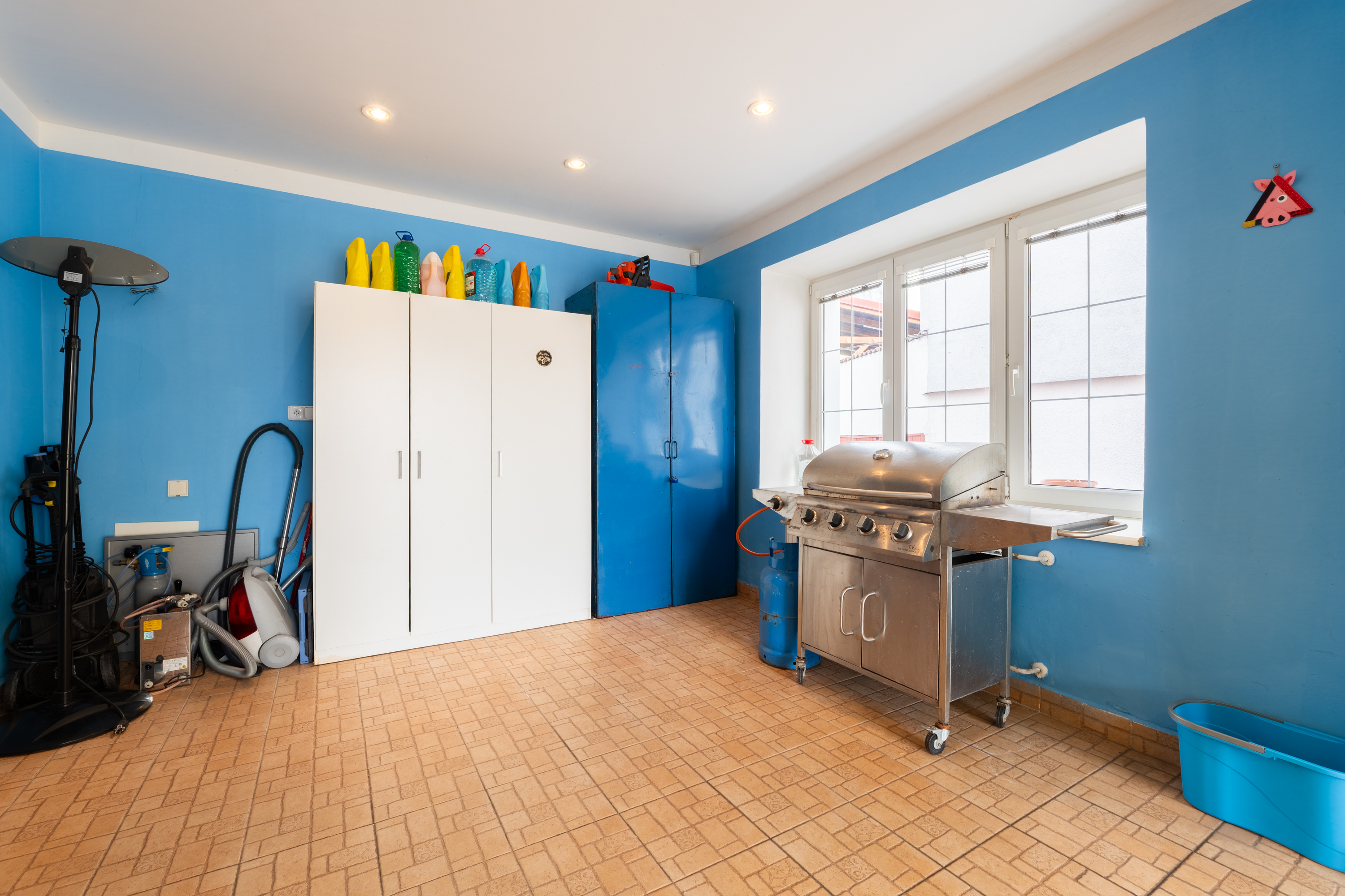 V přízemí se nachází prostorná garáž o velikosti 35 m², kde pohodlně zaparkujete nejen automobil, ale například i motorku a stále zůstane dostatek místa pro dílnu nebo nářadí.