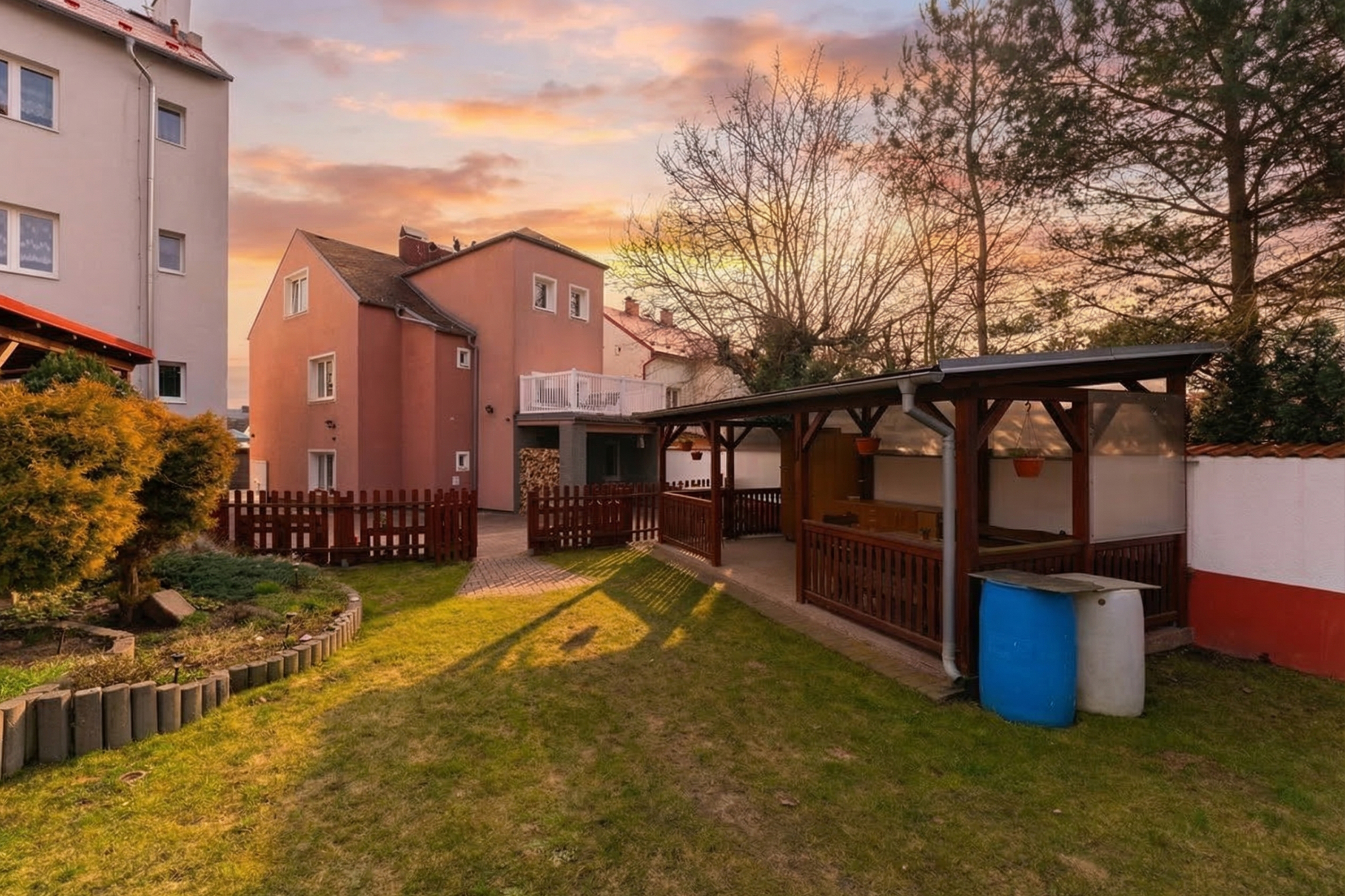 Velkou předností domu je krásná rovinatá zahrada o rozloze 370 m², která nabízí dostatek prostoru pro relaxaci i rodinné aktivity.