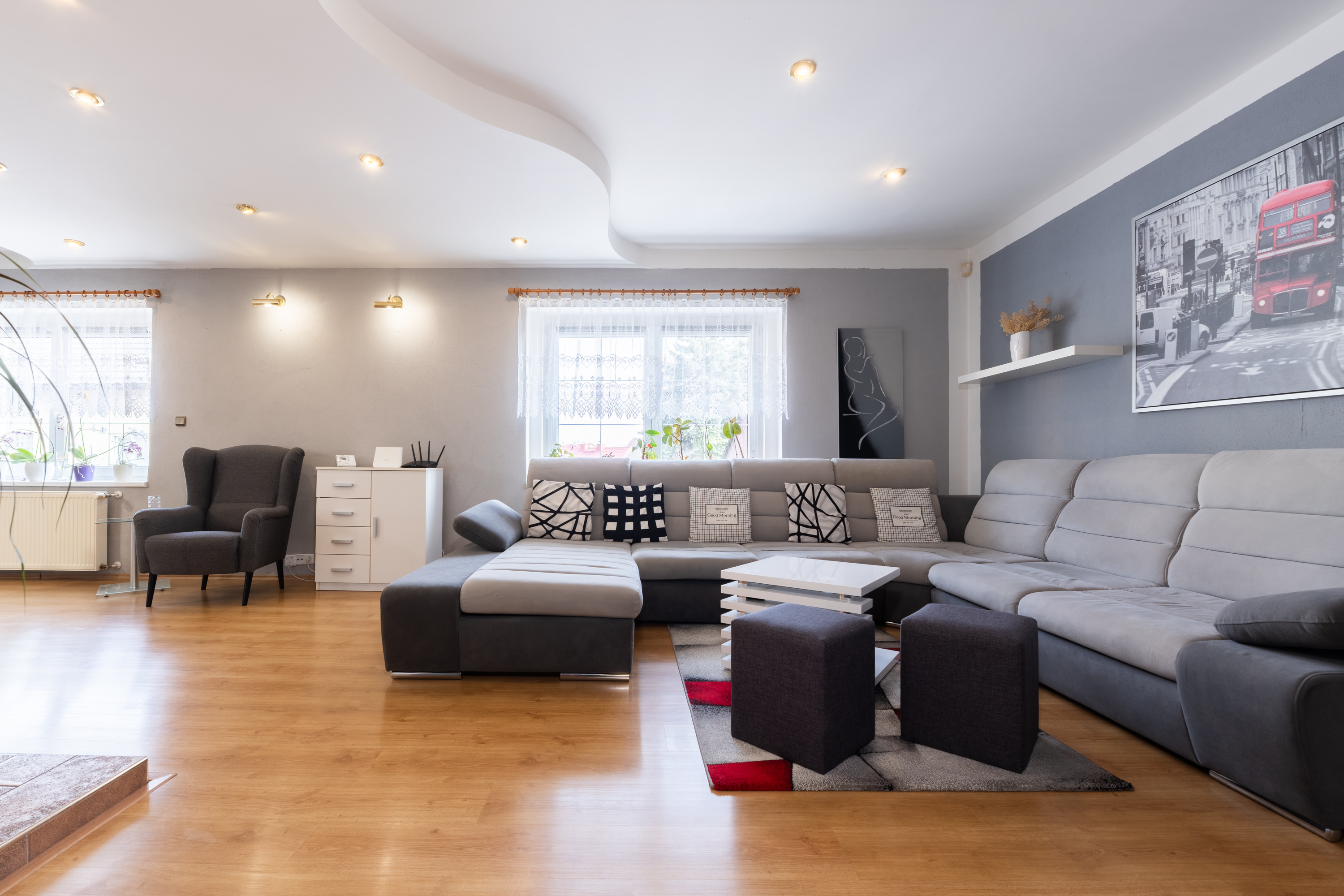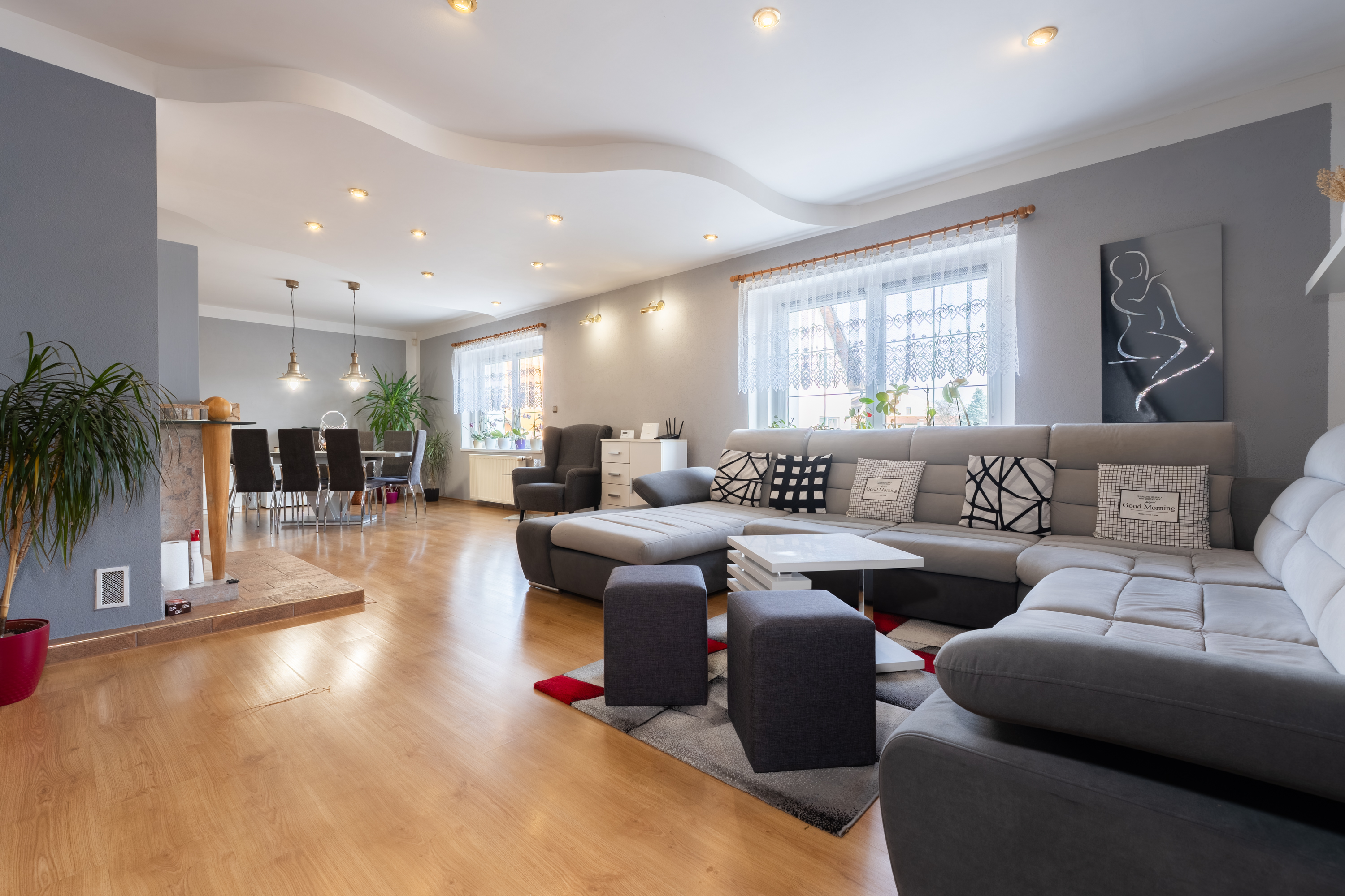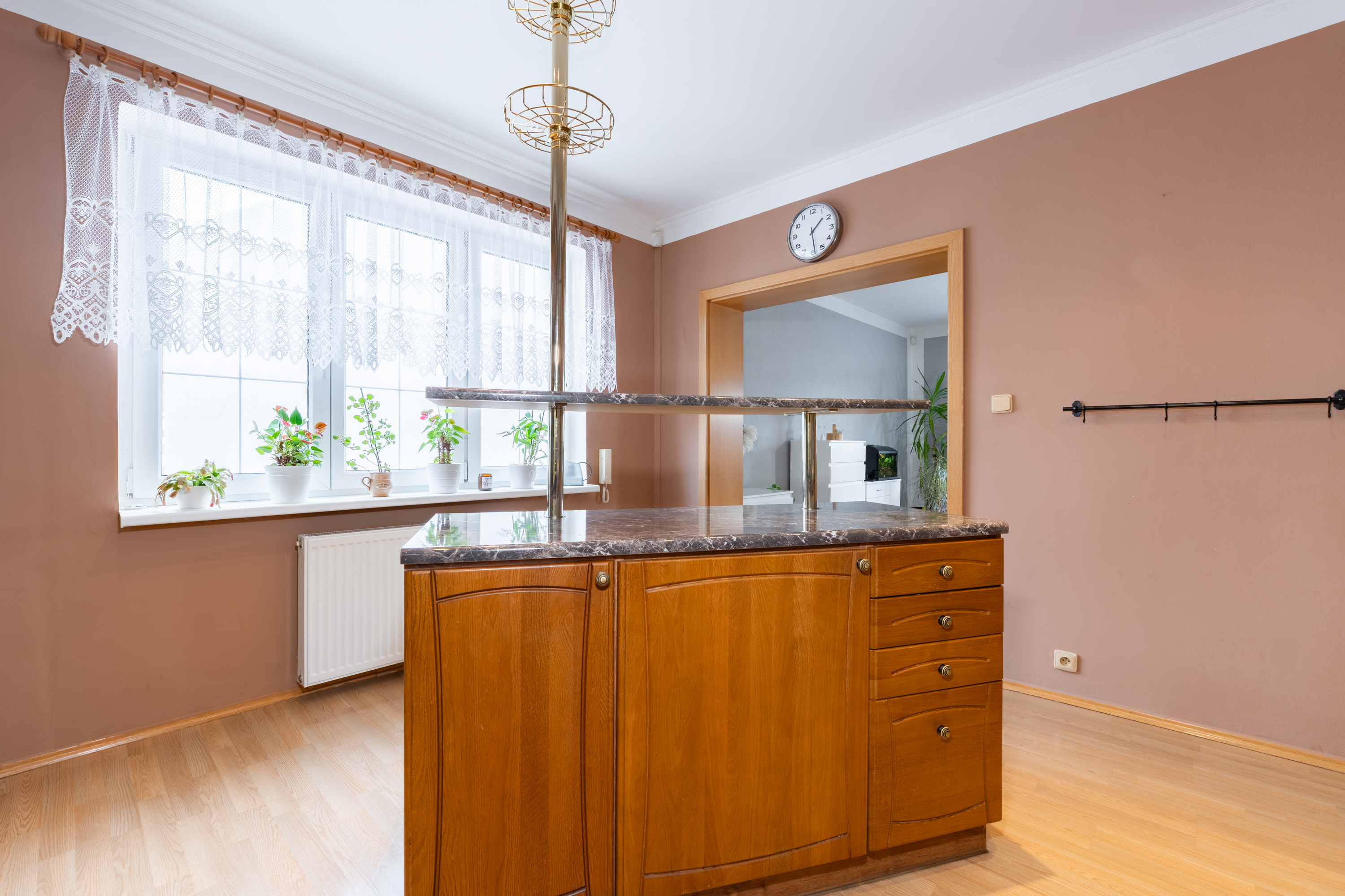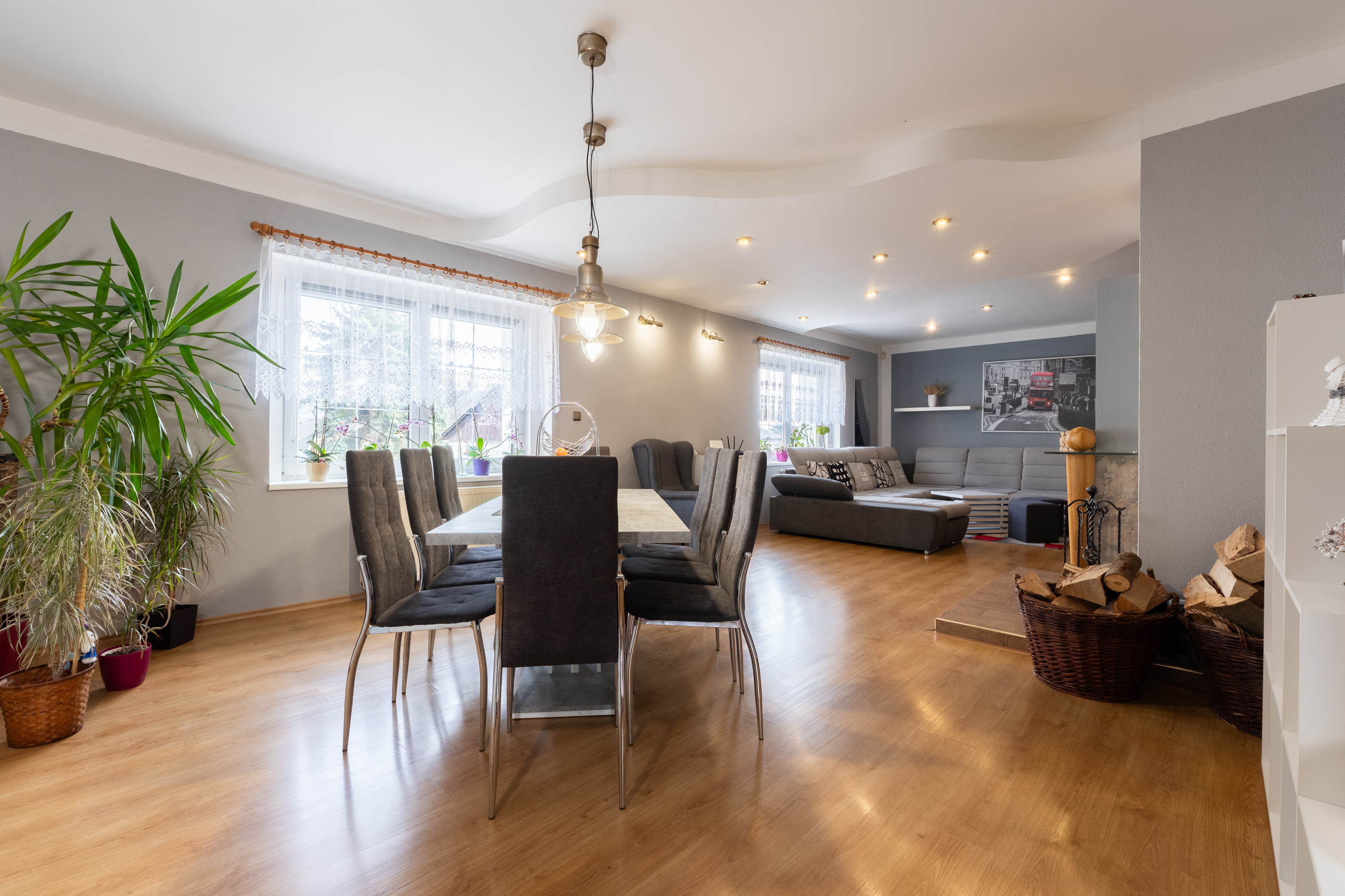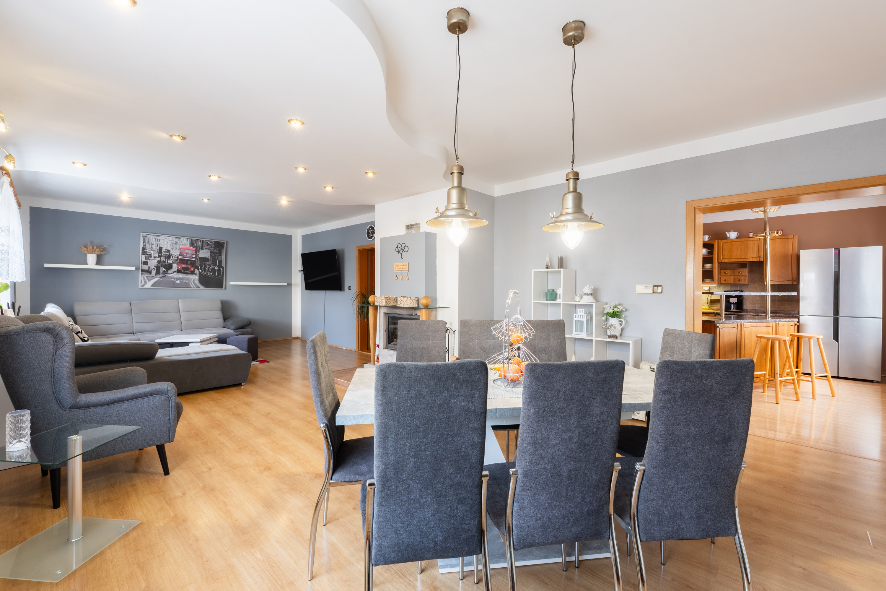 Srdcem domu je velký obývací pokoj propojený s kuchyní, který působí velmi vzdušně a příjemně.