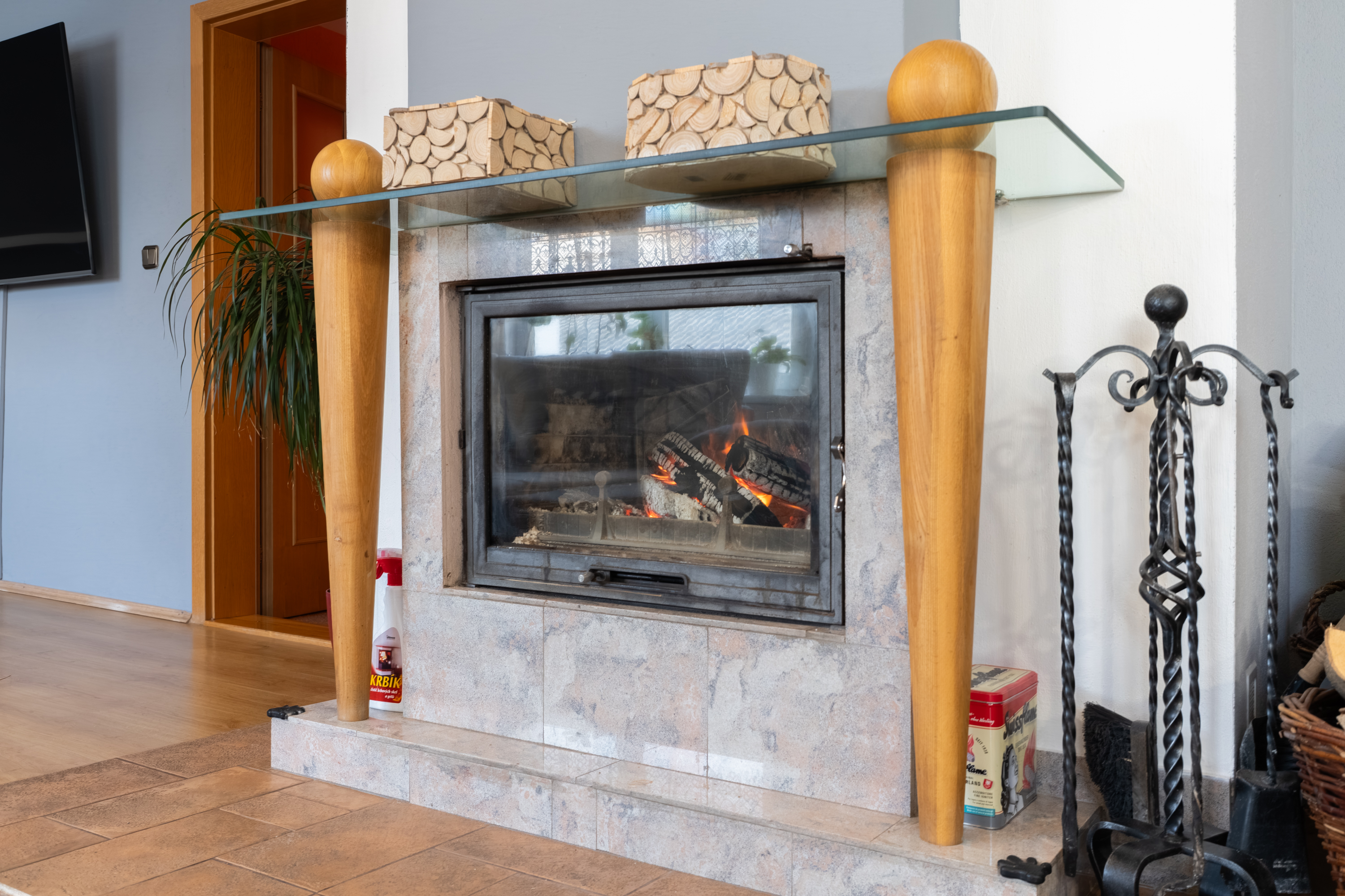 Dominantou prostoru je krb, který dodává místnosti jedinečnou atmosféru. Zajímavým designovým prvkem jsou také dekorativní reliéfy na stropě.